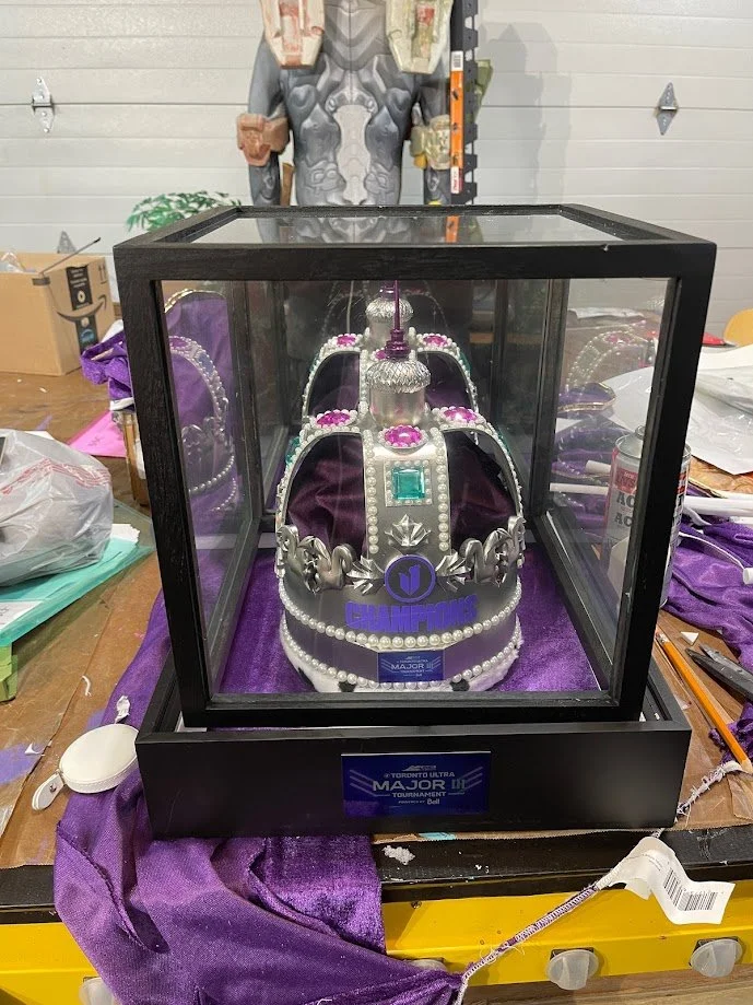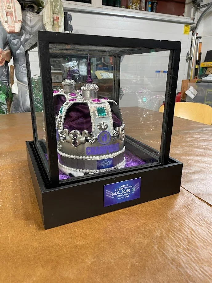 We built the championship trophy for the Toronto Ultra Major III Call of Duty tournament, creating two custom crowns—one for the winning team and one for display at the Toronto Ultra office.