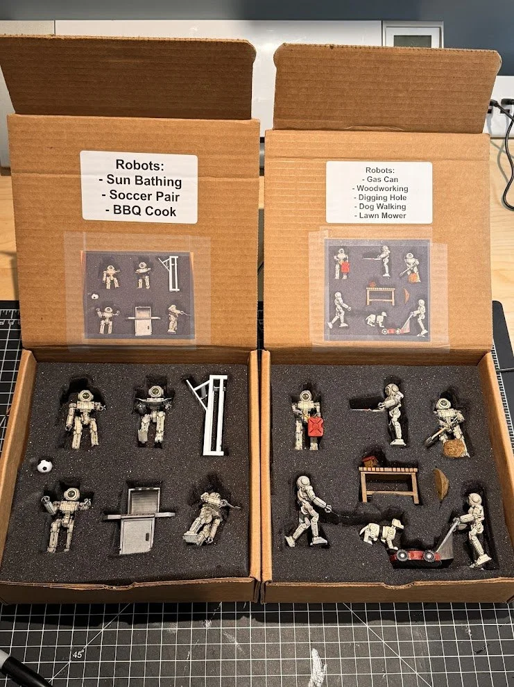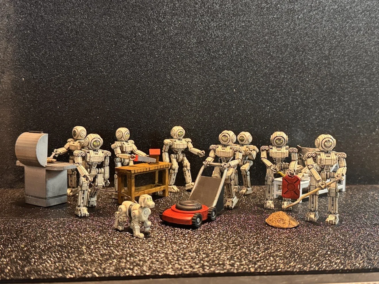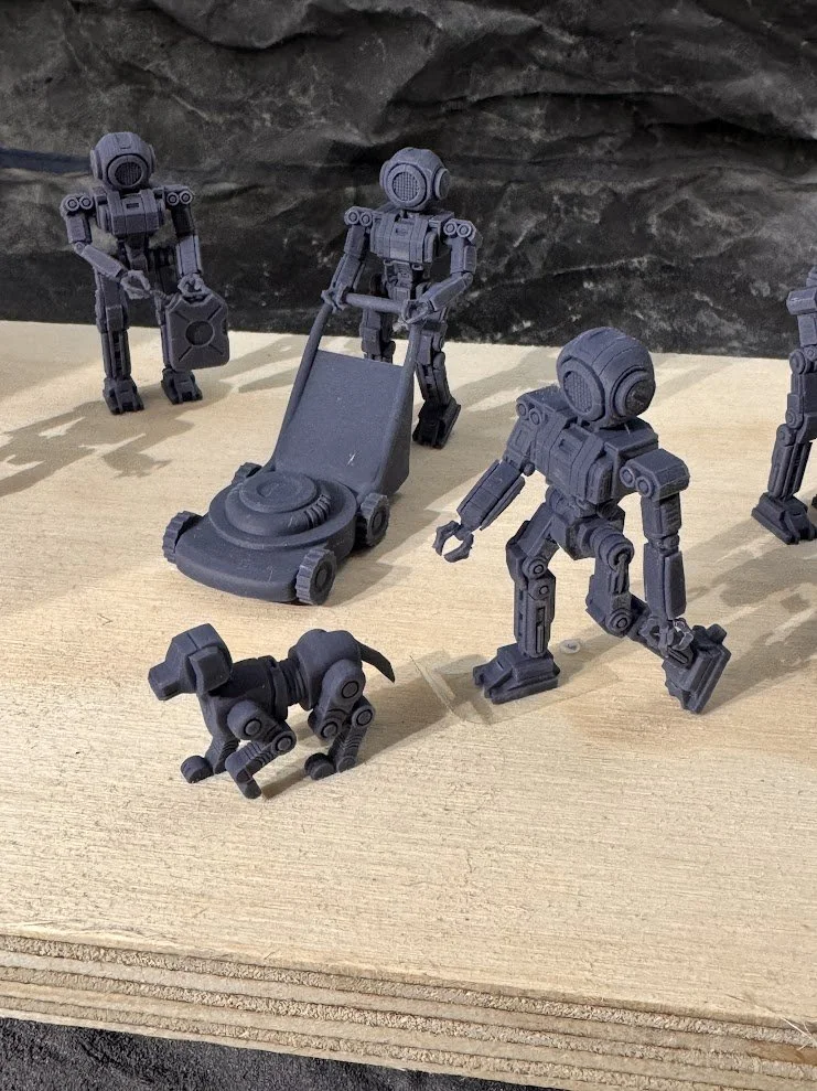 We were commissioned to create miniature robot figurines for dBrand’s launch of the “Touch Grass” skins for phones, laptops, and other devices. The concept centered on playful robots posed like humans going outside, tying into the campaign theme.