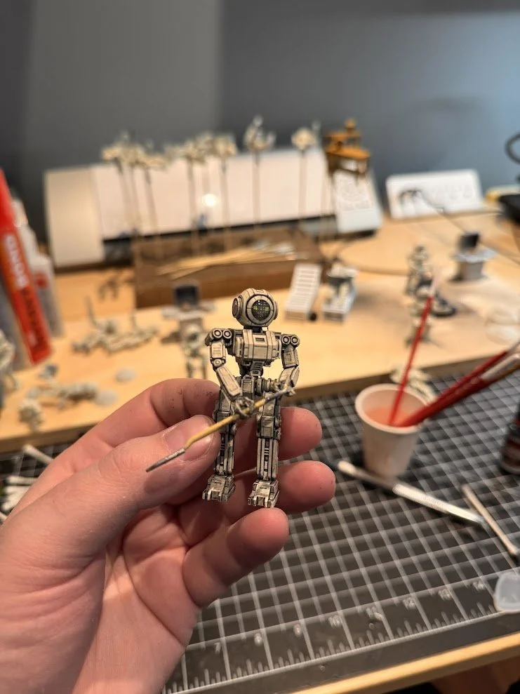 To achieve specific effects, we used clear UV resin for both structural supports and to create glowing screen elements. The completed figurines were then staged and photographed alongside the new product line.