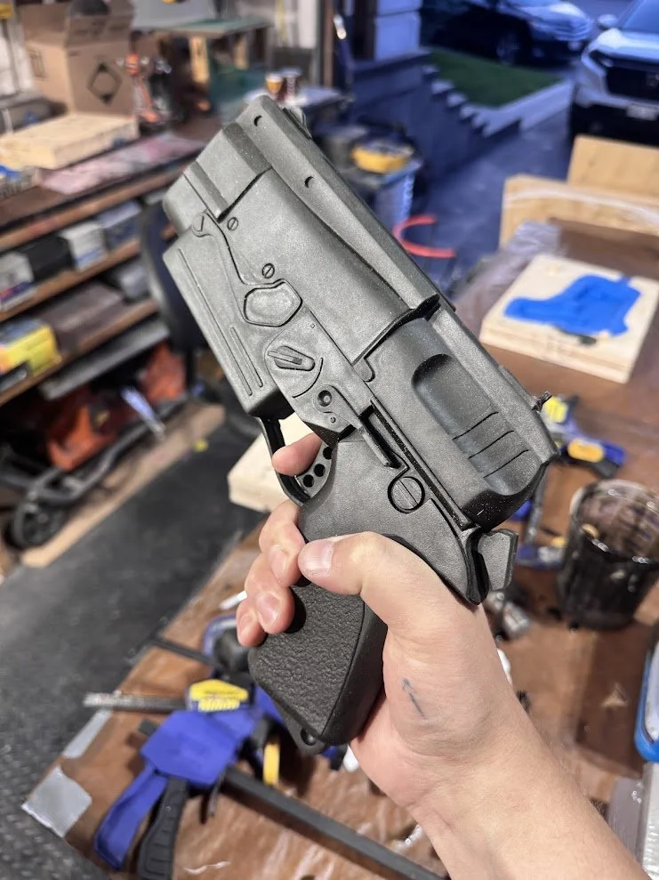 We began building the 10 mm pistol from Fallout 4 after watching the first season of the Fallout TV series, although it had been a project we had wanted to take on for a long time. While many replicas already exist, our goal was to approach the build the same way stunt weapons are produced for film, focusing on safety, durability, and repeatable casting.