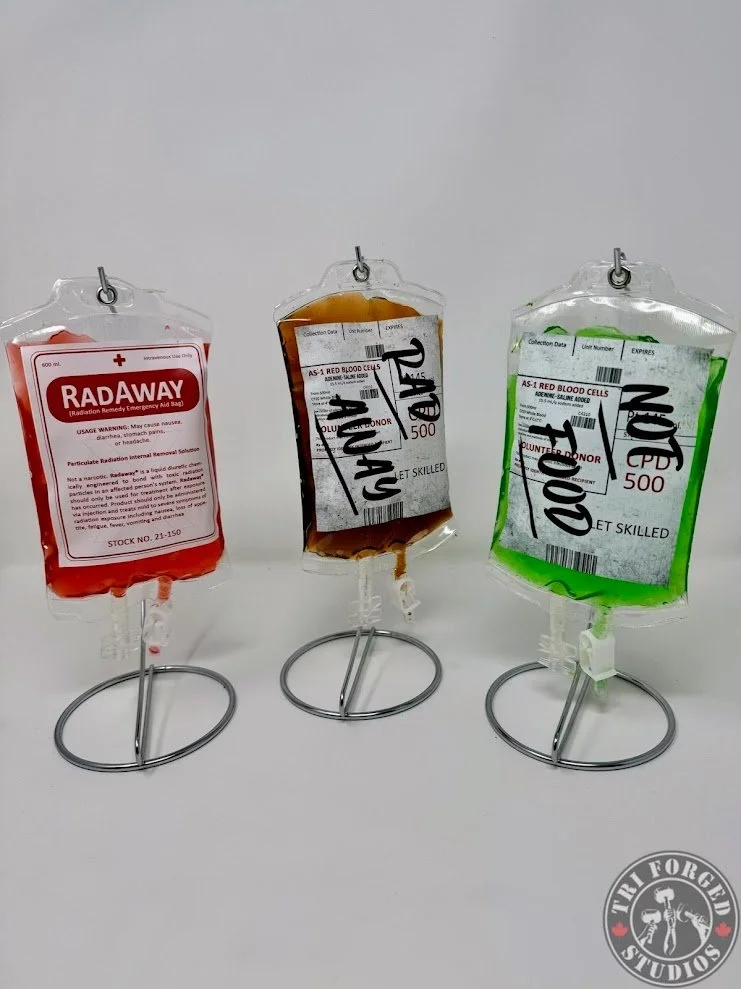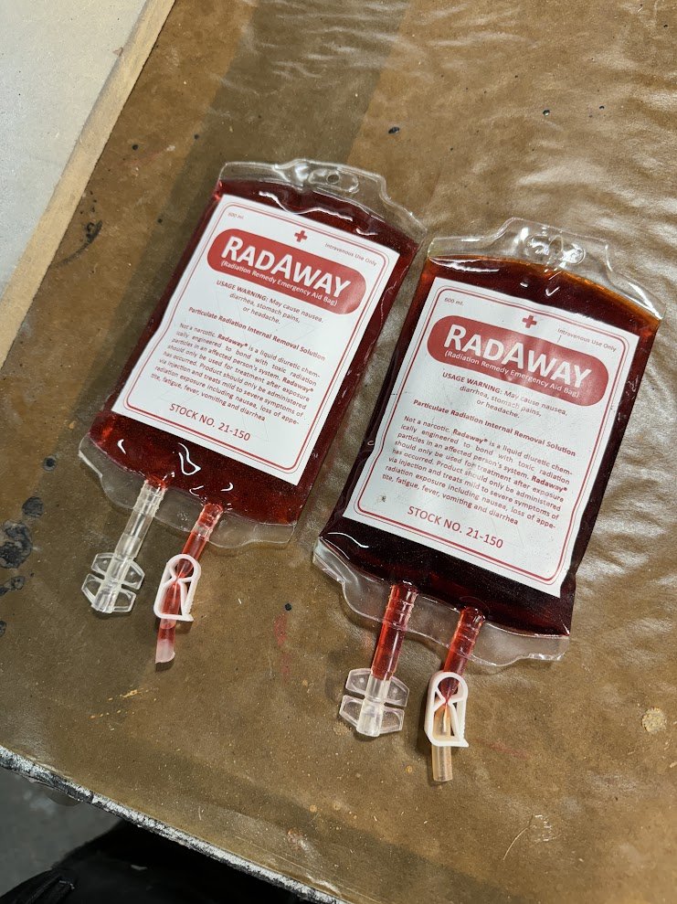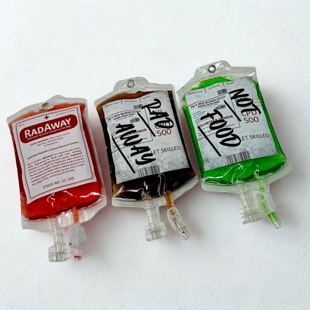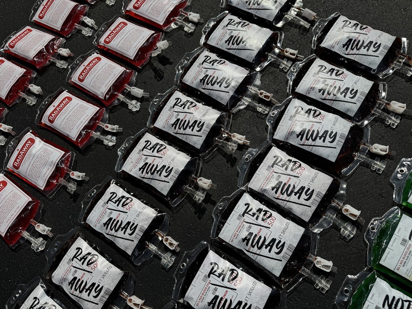 The labels were custom designed and printed on high quality waterproof vinyl. Each piece functions as a real ice pack that can be kept in the freezer or used in a lunch bag. For Fan Expo, we also included an optional hanger setup. An eyelet was installed in the pouch so the RadAway could be displayed without stretching or stressing the vinyl bag.
