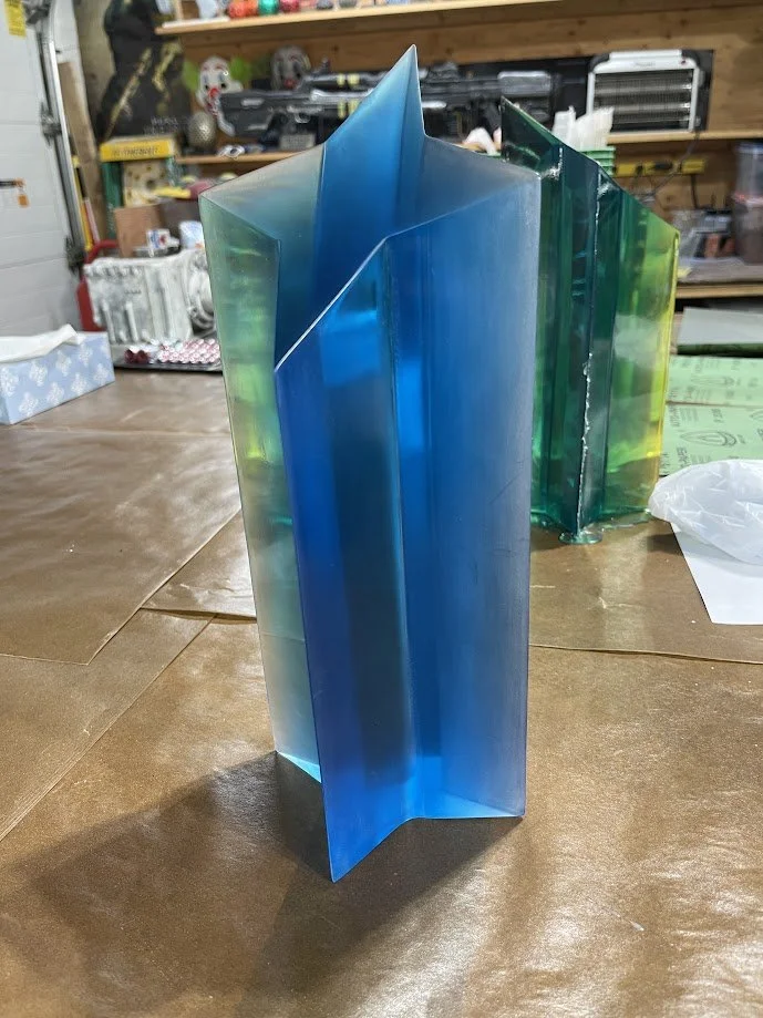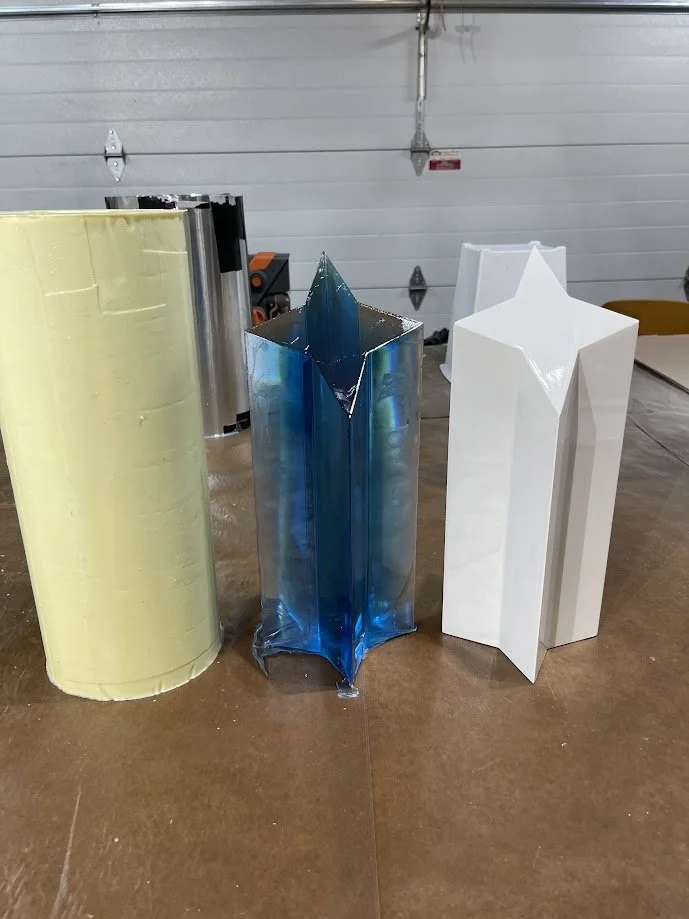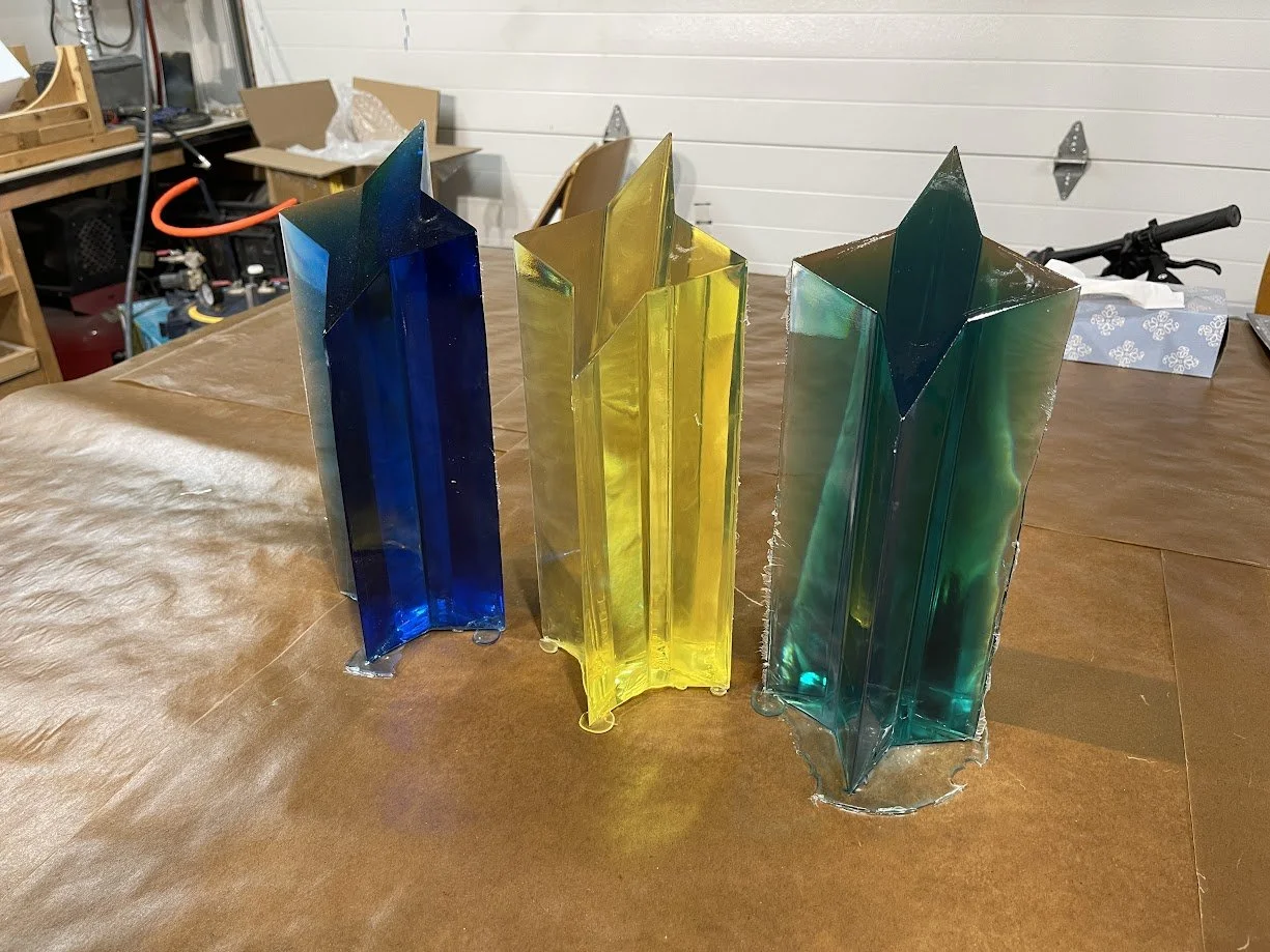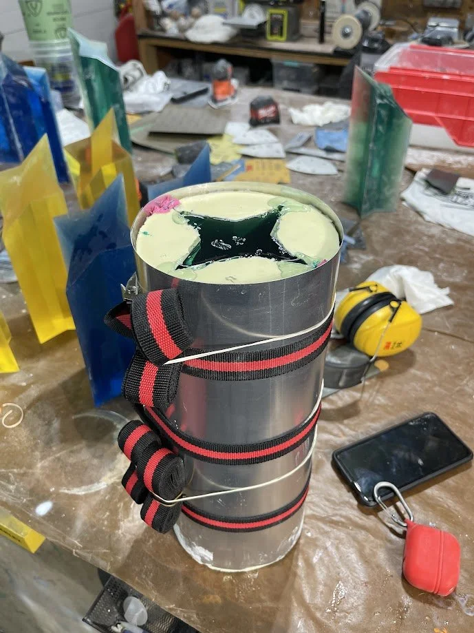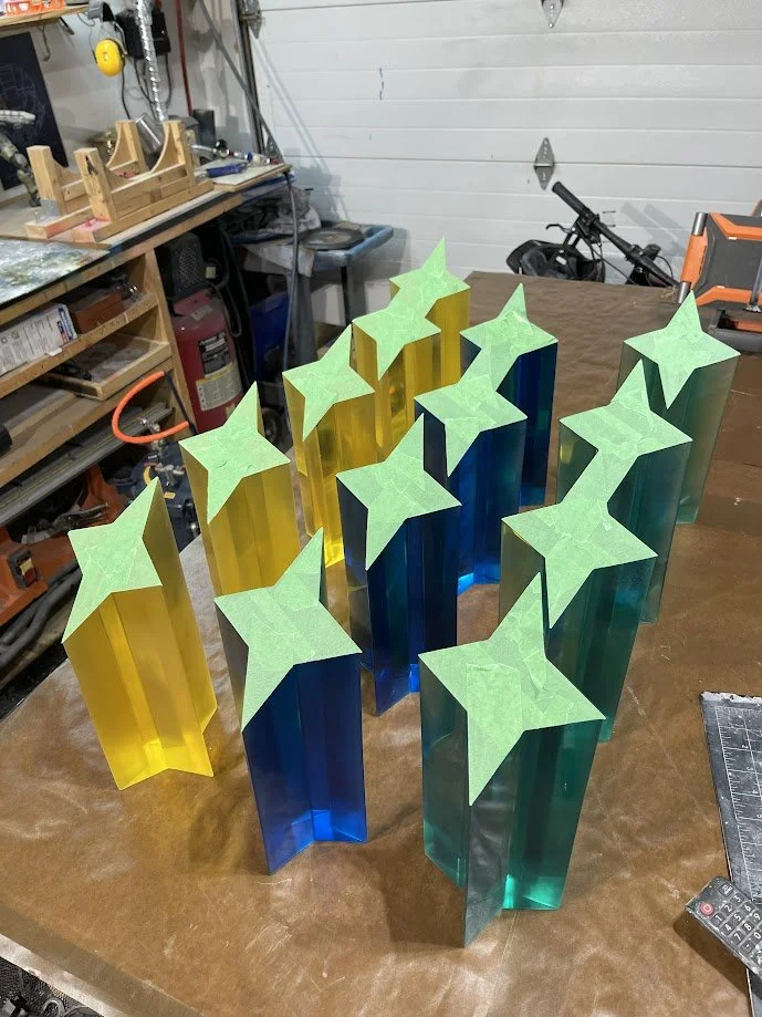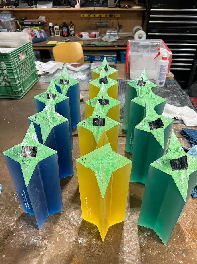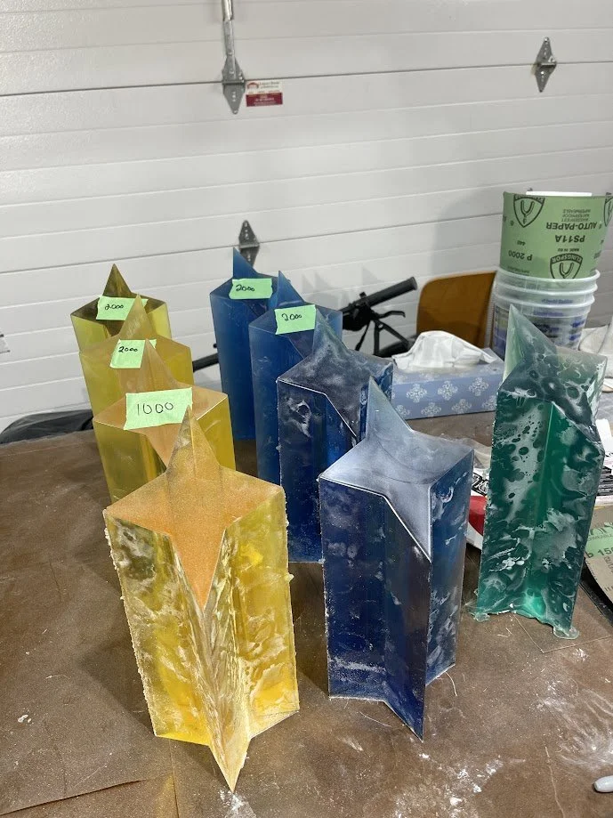 The trophies began as custom 3D models, which were 3D printed and sanded smooth before being molded in tin-cure silicone. Tin-cure was chosen to minimize the risk of cure inhibition, ensuring clean and consistent castings. Each trophy was produced in Smooth-Cast 326 urethane resin, carefully pressure-cast for bubble free results.