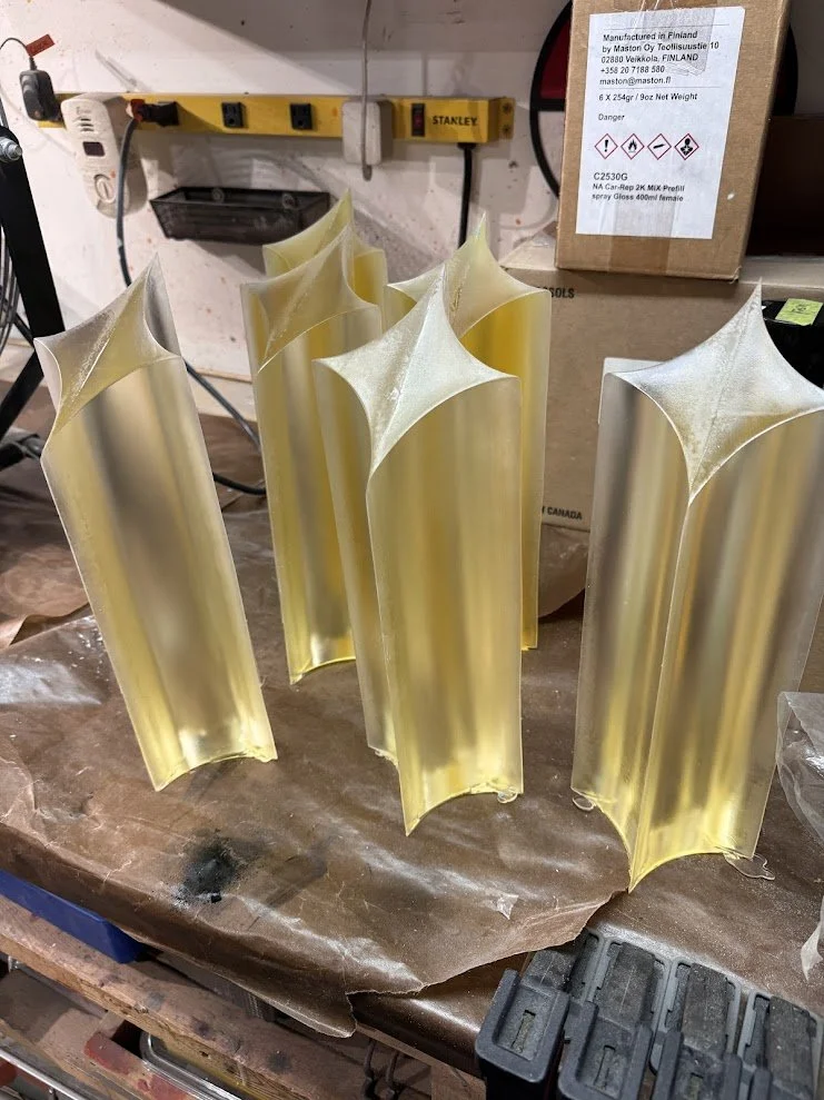 Each award began as a custom 3D print which we refined and used to create a silicone mold. The pieces were pressure cast in Smooth Cast resin, then candy painted and detailed entirely by hand, including the custom toppers and the names of the winners. After painting, every award received a gloss 2K clear coat for protection and a premium finish.