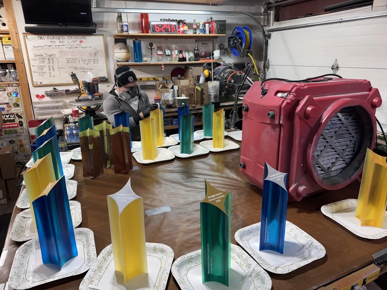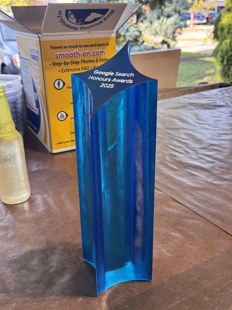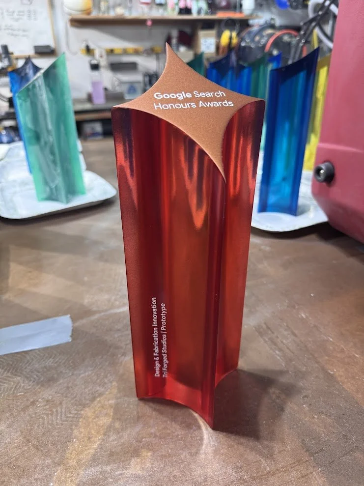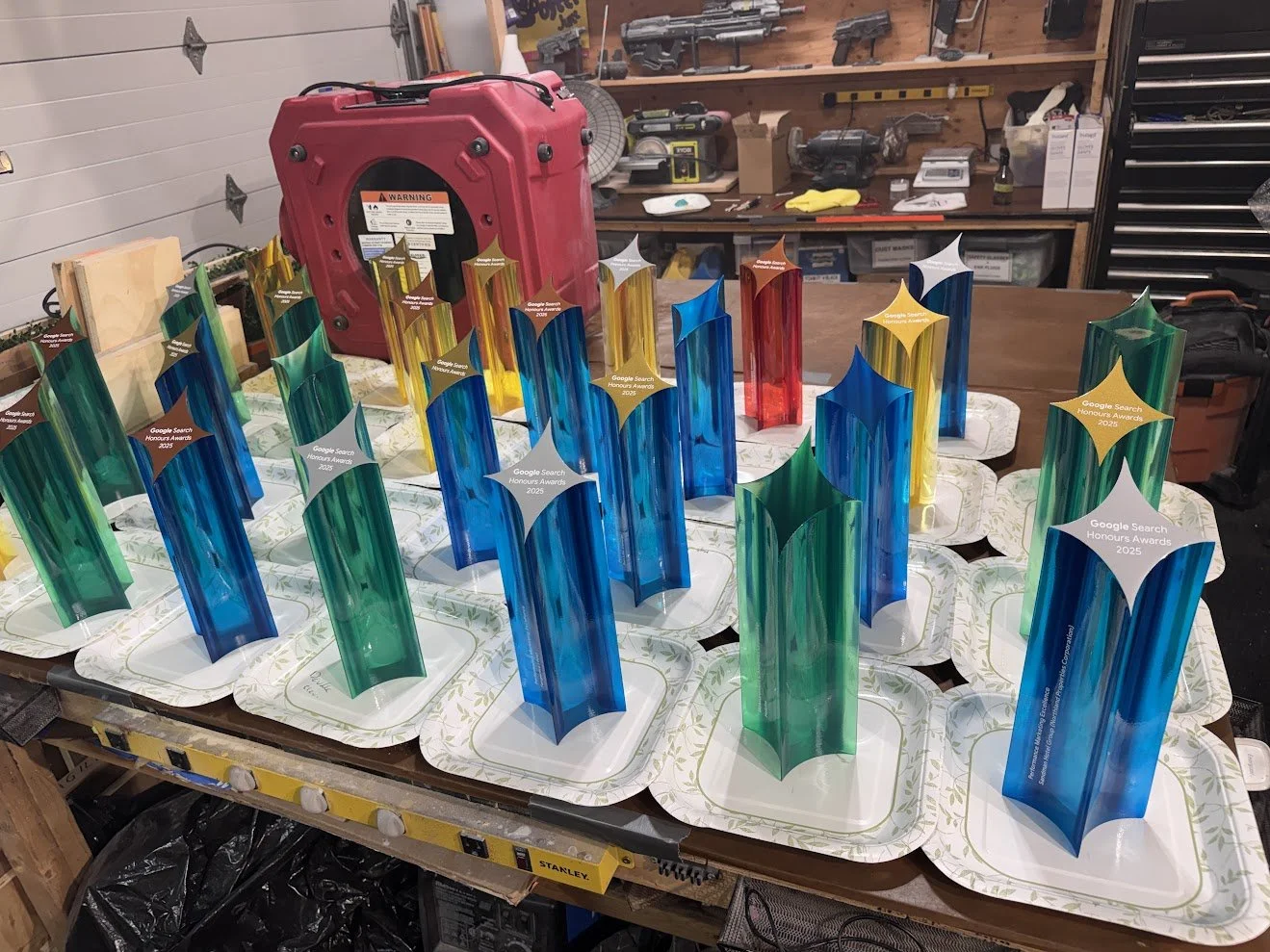 We were commissioned by Mosaic Canada to build the third iteration of the Google Search Honours Awards. This year introduced a new category, the “Rising Star” award, which featured a colour matched frosted top. In total, we produced 26 awards across Google’s signature yellow, green, and blue palettes.