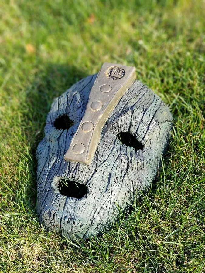 Since the wood grain detail is going to be done in black, a base coat of black was applied. Various coats of paint were used to achieve the weathering effects from the movie. The masks were later strapped with leather to be able to be hung on a wall for display!
