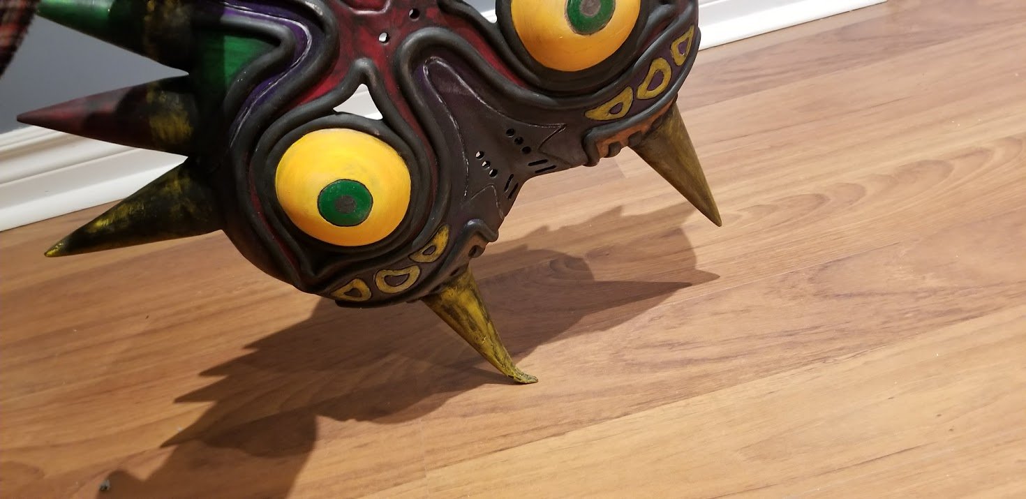 Majora’s Mask was a project we wanted to complete for a long time. It originally began in 2015 as a Pepakura build using files from DNP Props, but the project remained in that stage for several years. In the summer of 2017, after Tri-Forged Studios brought on shop assistants Alannah and Luis, we resumed the project in preparation for Toronto Fan Expo.