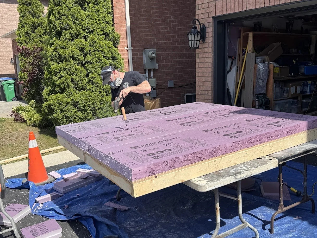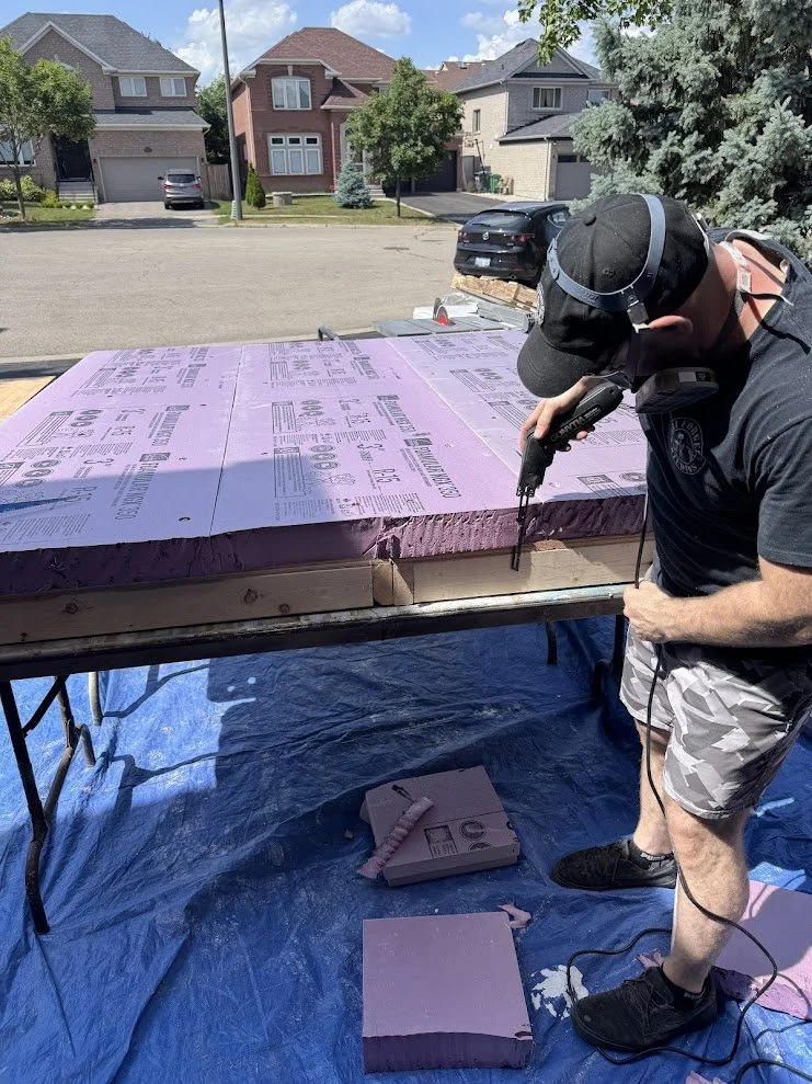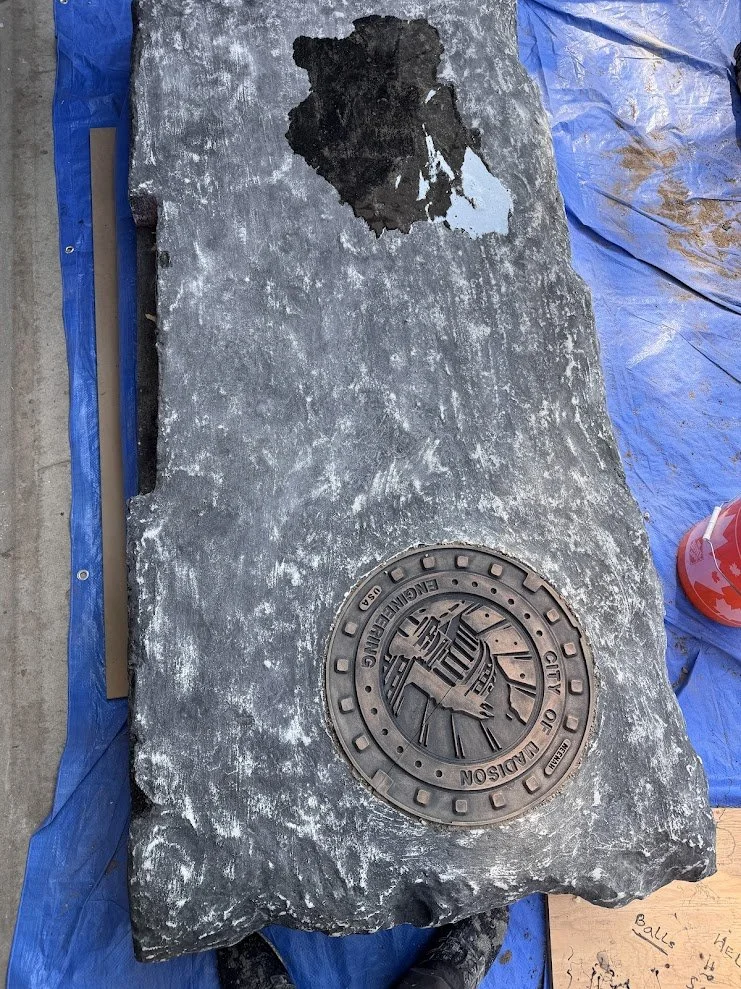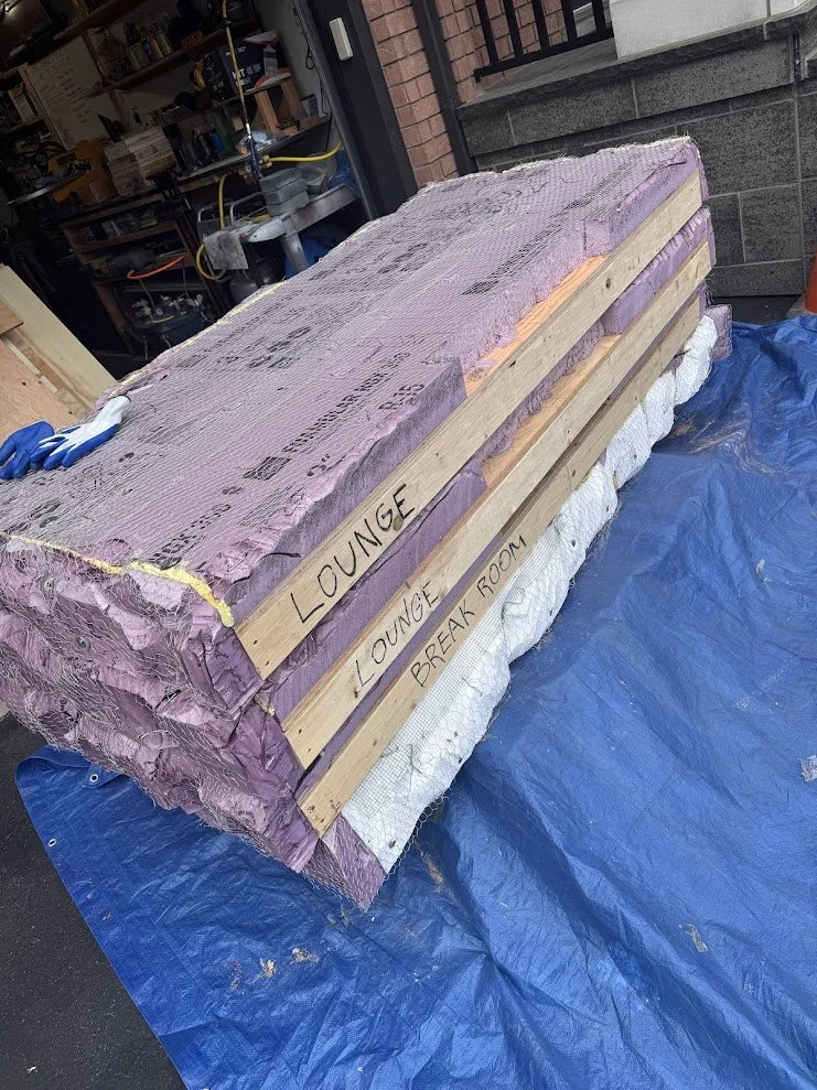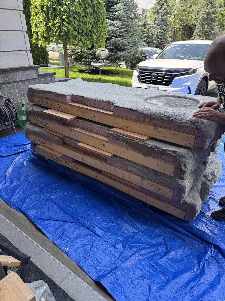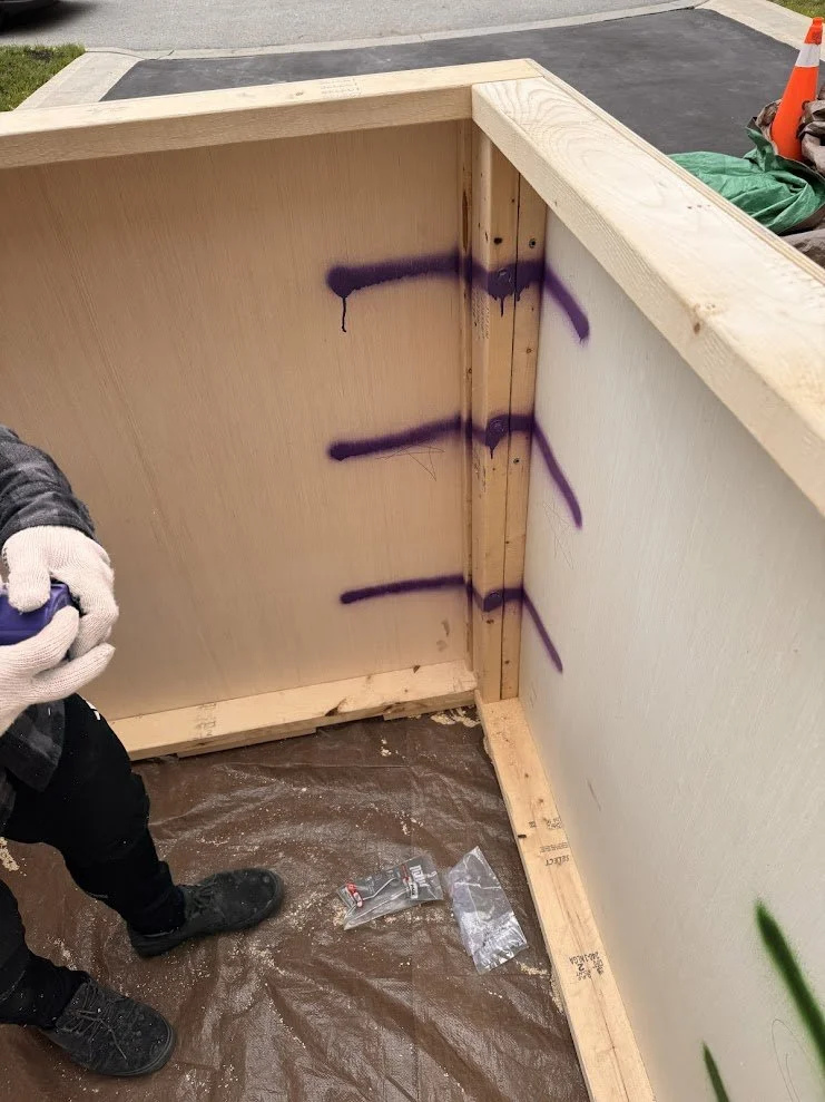The bases featured a wide range of custom details, including manhole covers, energy drink spills, lane markers, cigarette packs, and Molotov cocktail props. Each base was built from plywood with XPS foam secured around the edges, carved to shape, and reinforced with metal mesh. This provided the grip and strength needed for a vertical concrete mix, which was hand-applied and shaded using multiple techniques for realism.