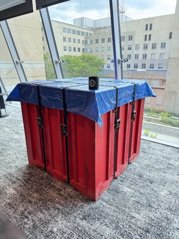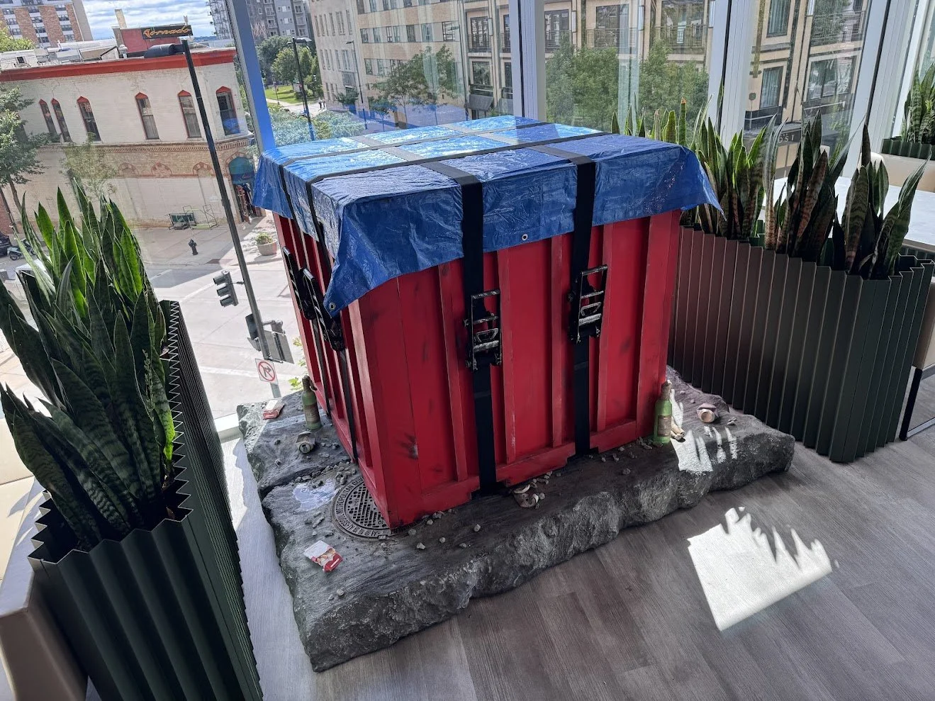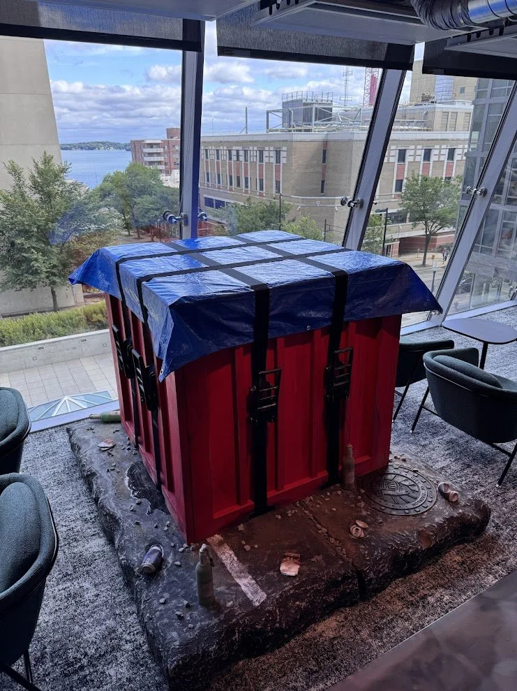 We were commissioned by PUBG Studios to create 2 life-sized 4ft supply drop crates from their video game PUBG. The crates were designed to be built and displayed inside their offices. Constructed from plywood and XPS foam, the biggest challenge was ensuring they could be repeatedly assembled and disassembled while still fitting through standard doorways. To solve this, the entire build was made modular, with panels that broke down easily for transport. Large custom ratchet straps were also produced to match the in-game look.
