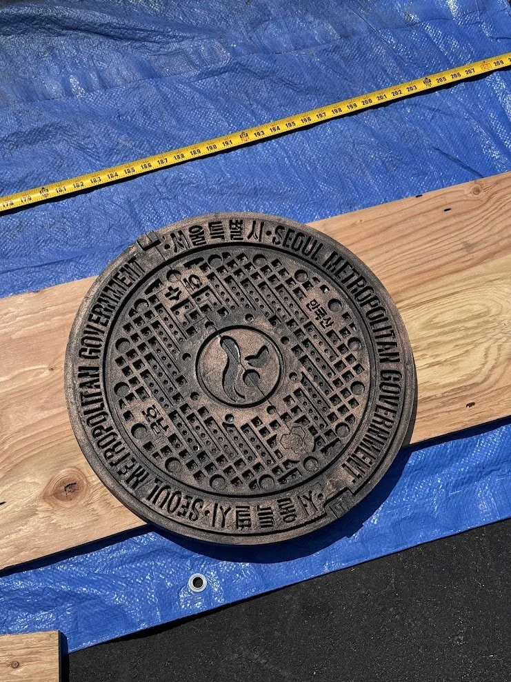 Each base consisted of 2 panels that could split apart to fit through standard doors. Water spills were recreated with clear water epoxy. The manholes were 3D modeled, printed, and finished with an aged bronze-copper look. Cigarette packs were printed and assembled from paper to match in-game models, while faux cigarettes were rolled from printed paper for added authenticity.