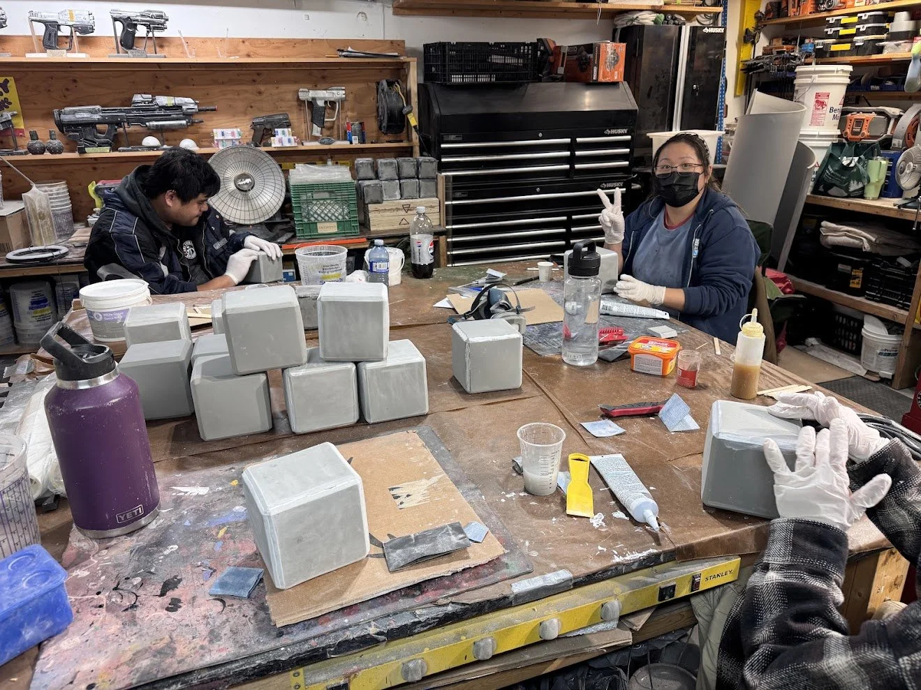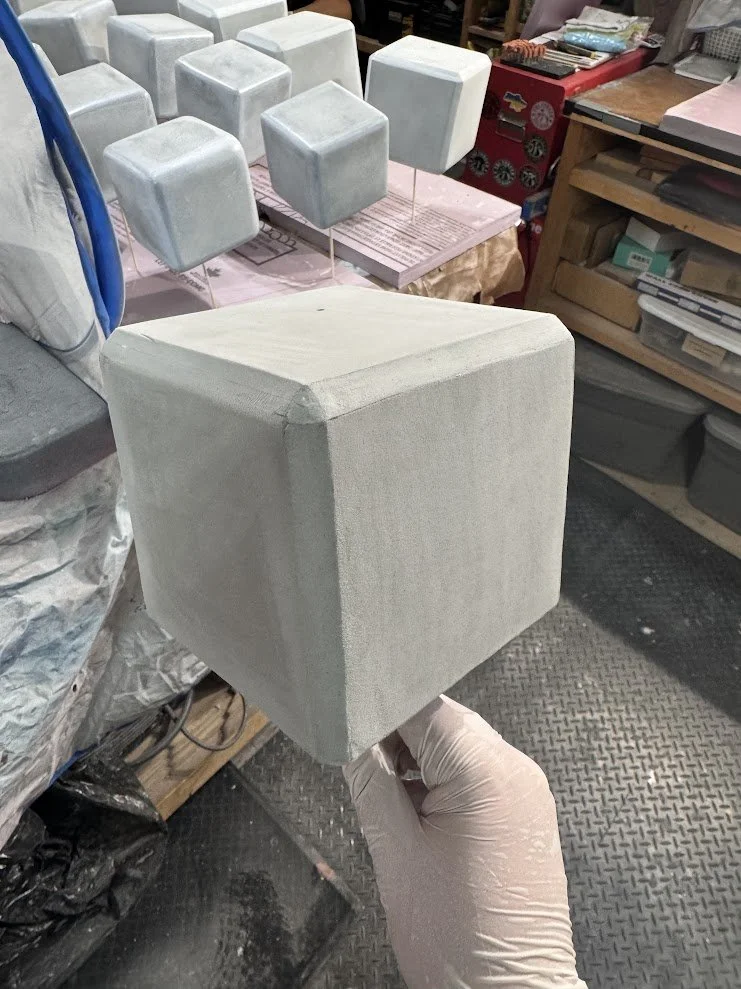 Seam lines were refined using a combination of flexible fillers including DAP Alex Plus and Flexi-Filler. Every cube was then wet sanded to clean the edges and smooth the surface.