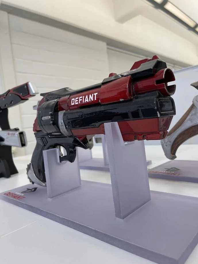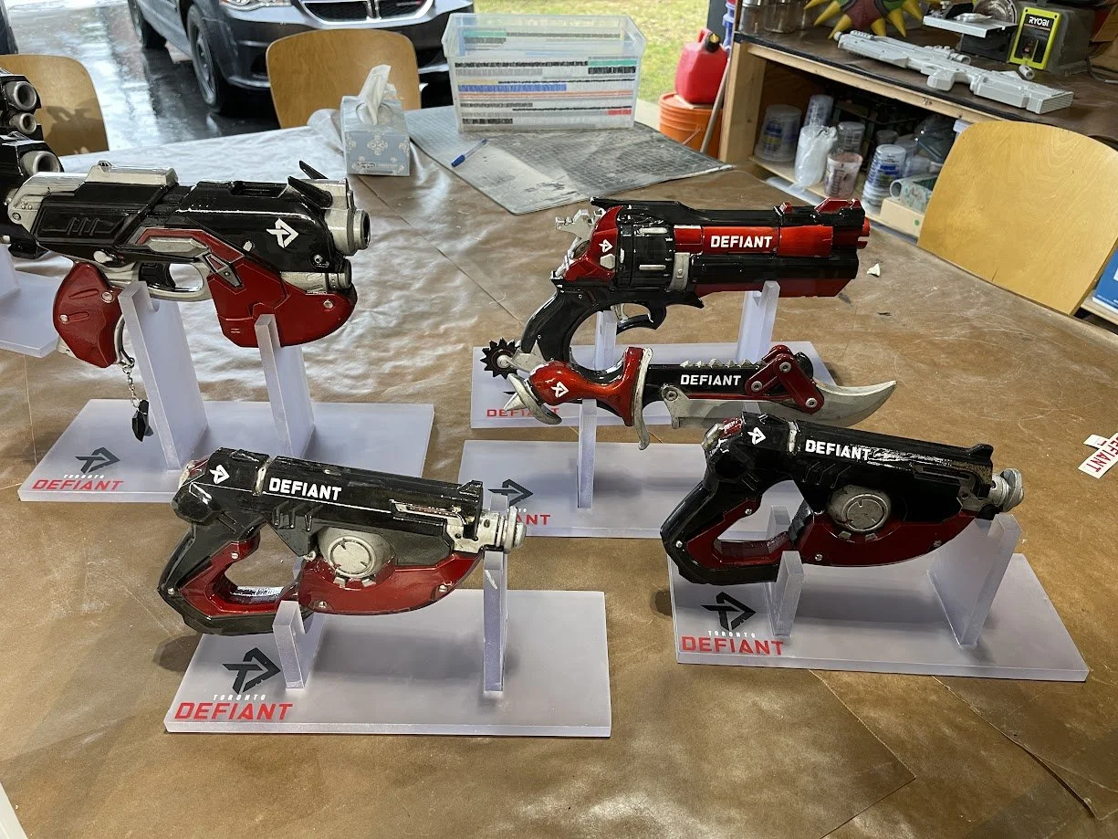 We were commissioned to create life-sized replicas of iconic Overwatch 1 & 2 weapons, finished in the Toronto Defiant team skins. This project combined custom 3D printing with refinished toy replicas, ensuring accuracy, durability, and fan interaction for photo ops.
