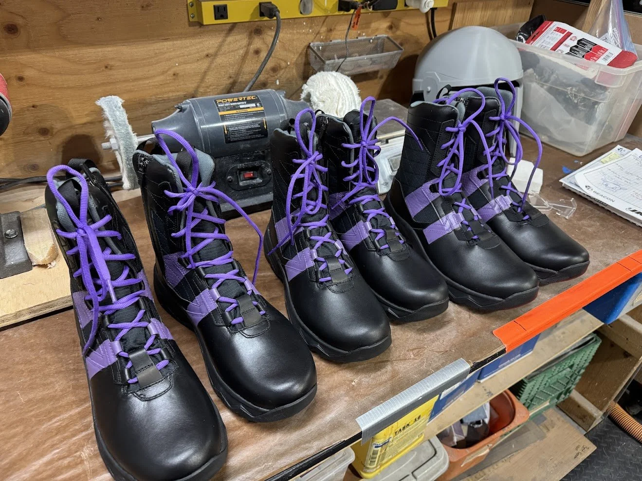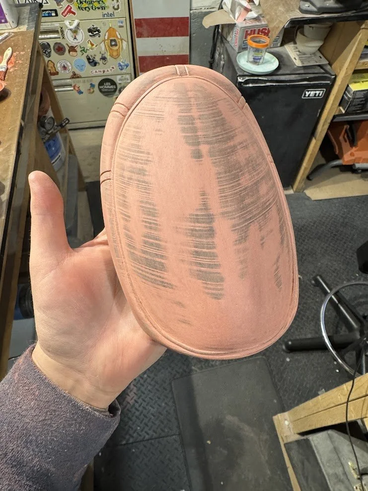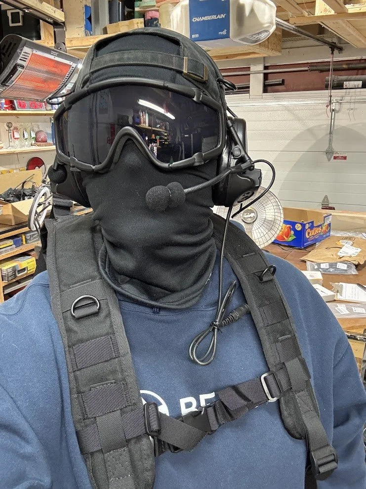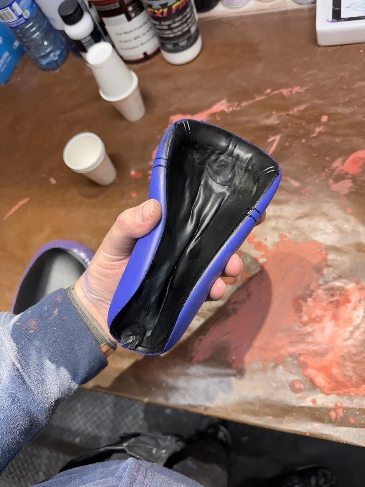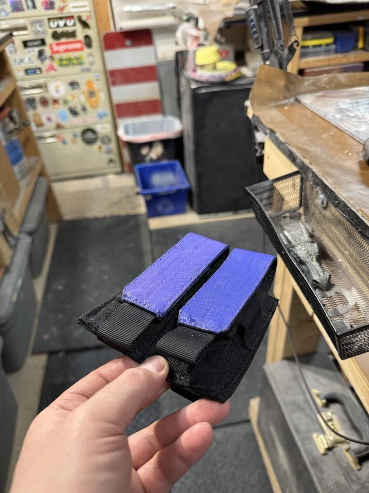 Some elements were built entirely from scratch. For example, the knee pads were designed in 3D, printed, molded in silicone, and cast in flexible foam rubber to allow actors full mobility. The goggle frames were custom painted, and the lenses were cut from tinted window film. After initial tests produced a pink tone that was too light, we refined it to a deep purple that matched the in-game reference. Jerseys were designed and sublimation printed onto crew neck sweaters, and the headphones were hollowed out so that actors could wear them comfortably while still being able to hear their surroundings.